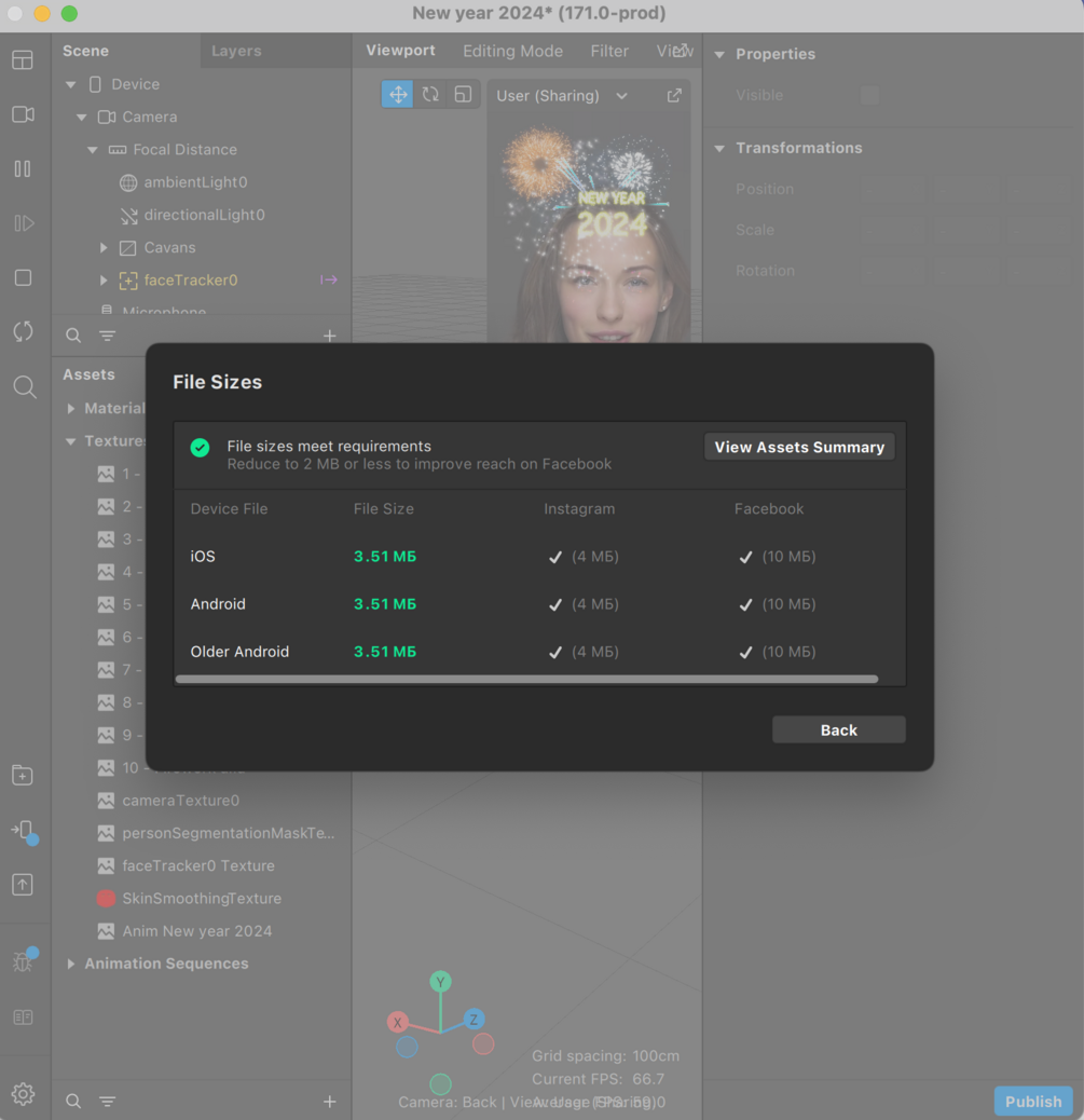 Также я собрал проект совместив все вместе, проект сделал в Spark AR 114 версии