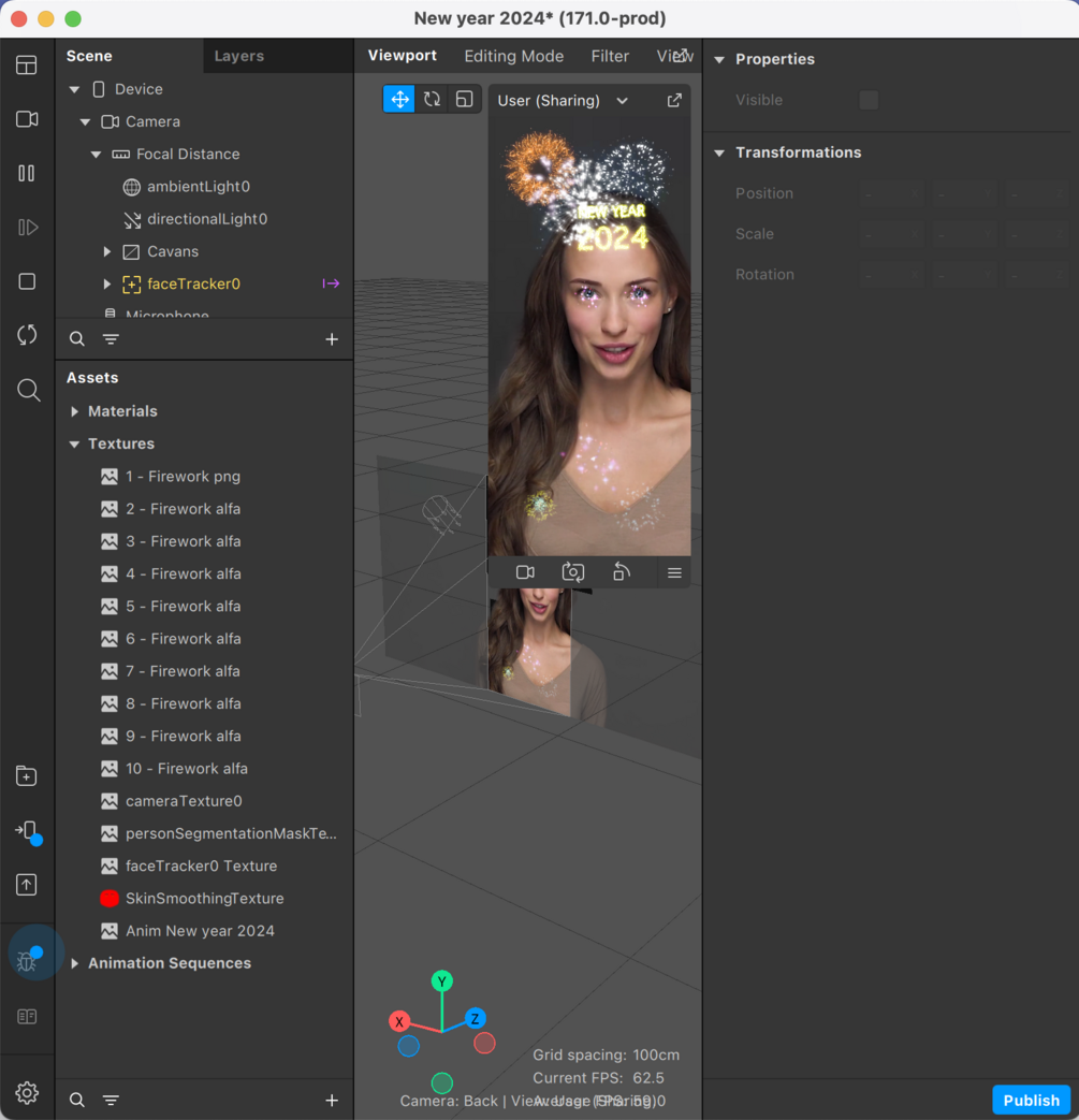 10 - Fireworks and New year 2024 Text Animation | Meta Spark AR Studio | 10 Фейерверков и Анимация текста I Filter Instagram